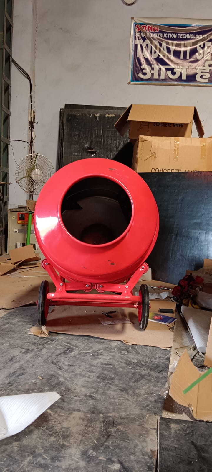 Designed with portability in mind, the mixer is mounted on strong wheels and a balanced frame, making it easy to move across construction sites or confined spaces. The ergonomic handle and tilting design allow effortless loading, mixing, and discharge of materials, reducing labor time and increasing work efficiency. Its compact size makes it suitable for house construction, renovation works, road repairs, and general building tasks where large mixers are not practical.