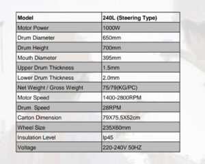 Overall, the 240 Ltr Portable Mixer is a perfect choice for contractors, builders, and construction workers who require a cost-effective, efficient, and reliable solution for concrete mixing. Its mobility, robust design, and high performance make it an essential tool for smooth and timely construction work.